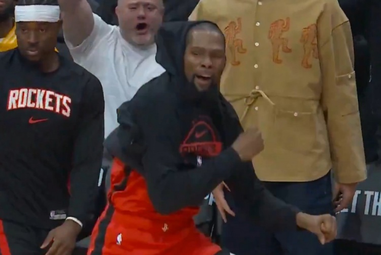> 比我方扣了还抖擞!谢泼德双手暴扣 替补席的杜兰特跳进场内庆祝体育赛事直播
