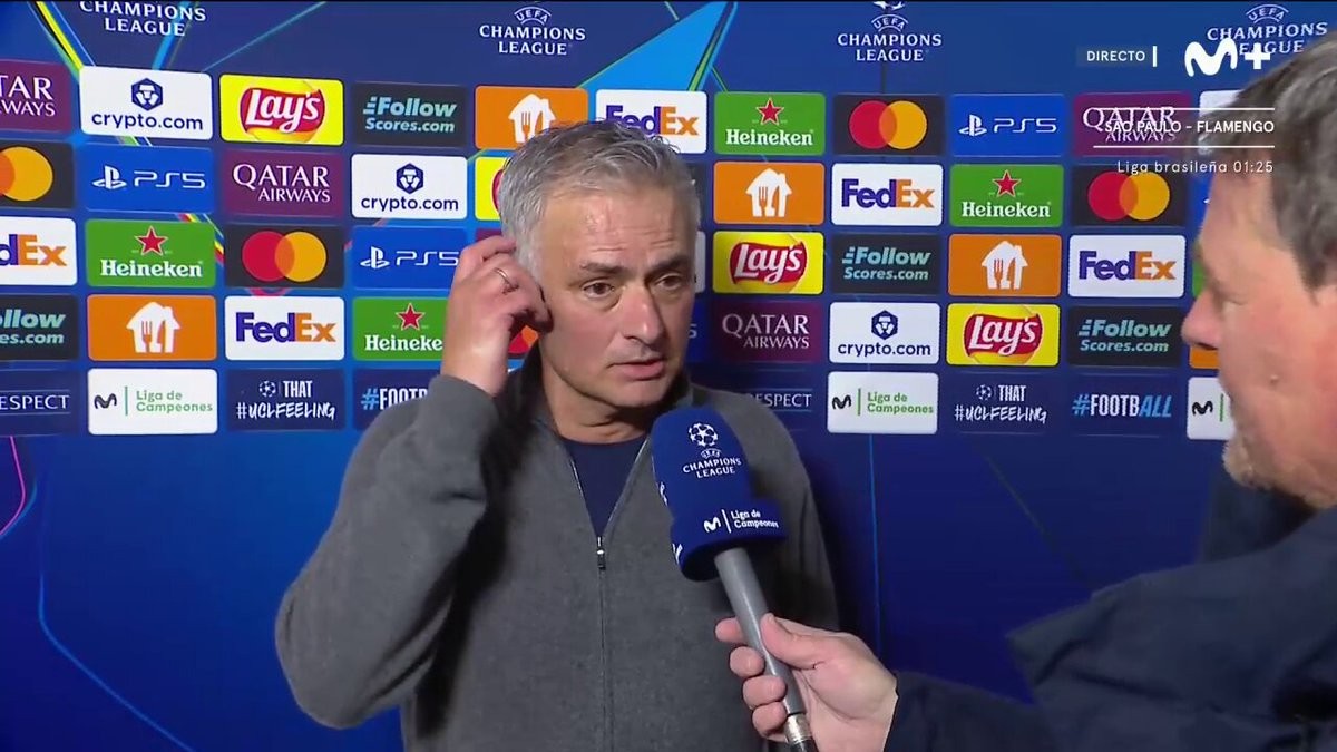 辅导本菲卡在主场4-2打败老东家皇马后,穆里尼奥袭取了Movistar+的采访。